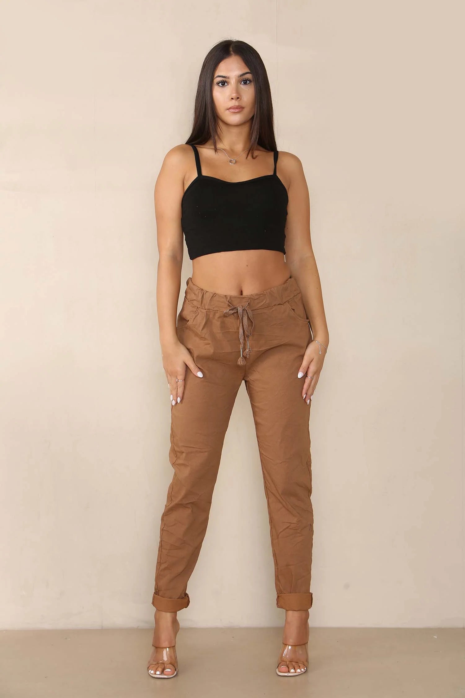 Italian Thin Stripes Print Drawstring Cotton Joggers